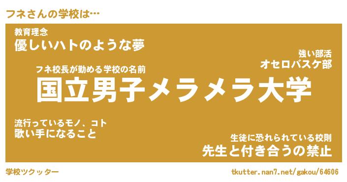 | ヘコむあだ名 | 『フネにー』『豆乳』『フネぷりん』 |