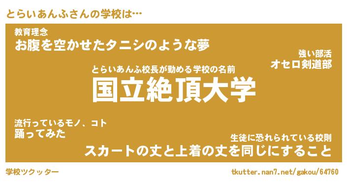 | 肩書あだ名 | 『とらいあんふCEO』『とらいあんふ班長』 |