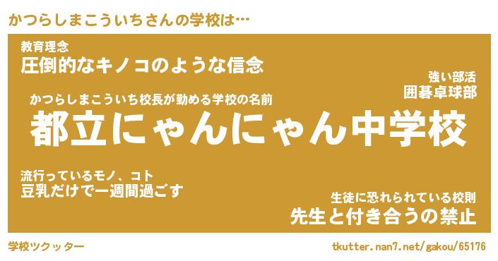 | 男性向けラノベタイトル風あだ名 | 『かつらしまこういちの憂鬱』 |