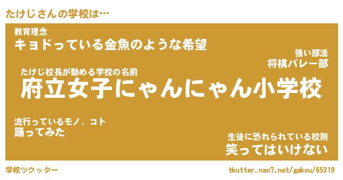 | ヘコむあだ名 | 『たけもー』『酢こんぶ』『たけ太郎』 |