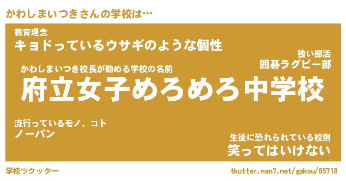 | 男性向けラノベタイトル風あだ名 | 『カワシマイツキアートオンライン』 |