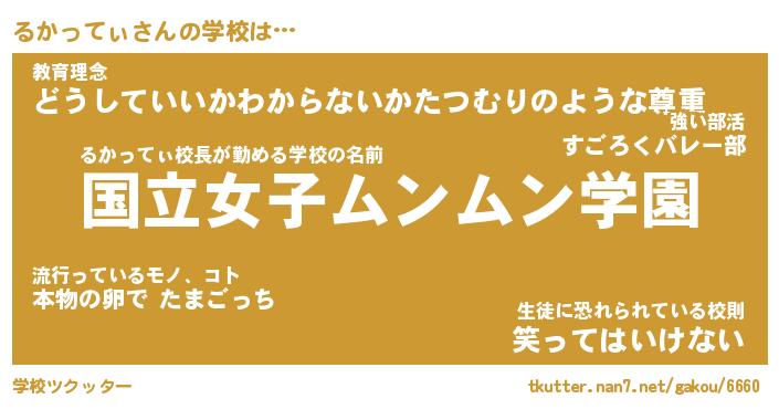 | ヘコむあだ名 | 『るかにゅー』『豆乳』『るかお』 |
