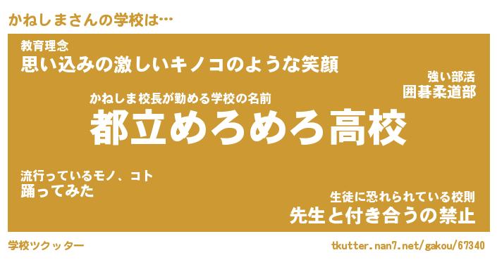 | 男性向けラノベタイトル風あだ名 | 『かねしまの憂鬱』 |