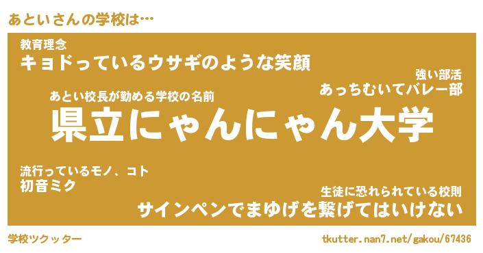 | 男性向けラノベタイトル風あだ名 | 『あといの憂鬱』 |