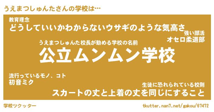 | 男性向けラノベタイトル風あだ名 | 『うえまつしゅんたの憂鬱』 |