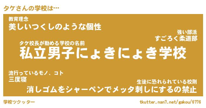 | 意味不明あだ名 | 『ペロリンタケ』『タケフォーエバー』 |