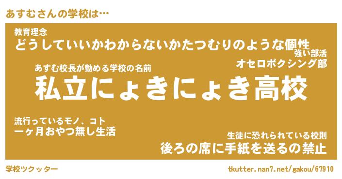 | 男性向けラノベタイトル風あだ名 | 『あすむの憂鬱』 |