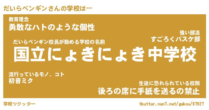 | 女子向けラノベタイトル風あだ名 | 『(仮)だいらペンギンのやんごとなき事情』 |