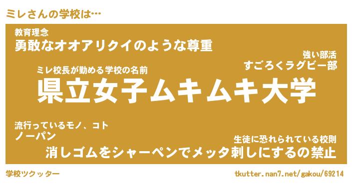 | ヘコむあだ名 | 『ミレにー』『なまこ酢』『ミレ太郎』 |