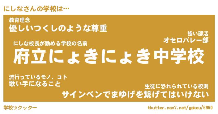 | ファンタジー風あだ名 | 『ニシフェル』『エターナルニシナー』 |