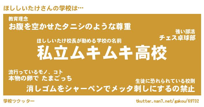 | 男性向けラノベタイトル風あだ名 | 『ほししいたけの憂鬱』 |