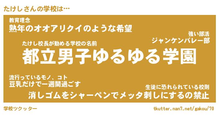 | 意味不明あだ名 | 『ペロリンたけし』『たけしフォーエバー』 |