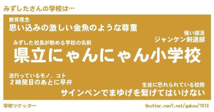 | ヒーロー風カッコイイあだ名 | 『スーパーミズシタ』『銀牙騎士ミズ』 |