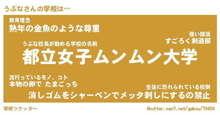 | ヘコむあだ名 | 『うぶにゅー』『つくし』『うぶを』 |