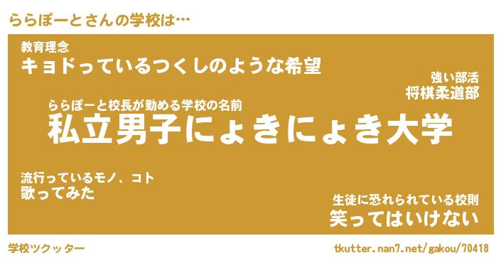 | 料理風あだ名 | 『節約★ららぽーとと油揚げの玉子丼』 |