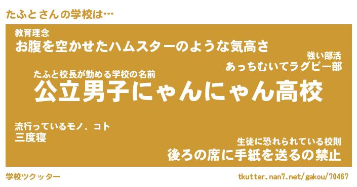 | 男性向けラノベタイトル風あだ名 | 『たふとの憂鬱』 |