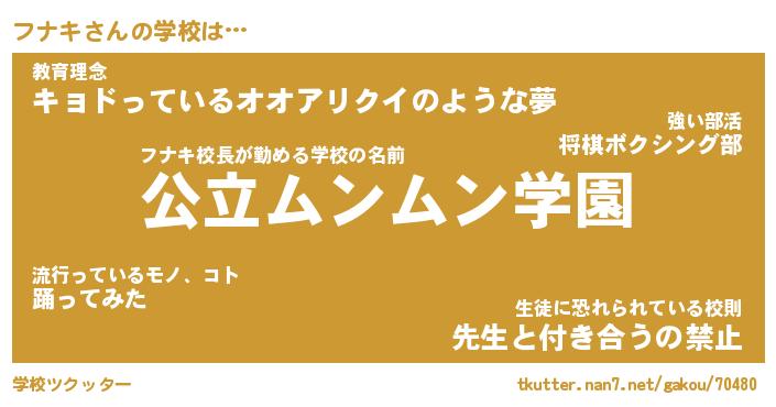 | ヒーロー風カッコイイあだ名 | 『スーパーフナキ』『ウルトラフナキマン』 |