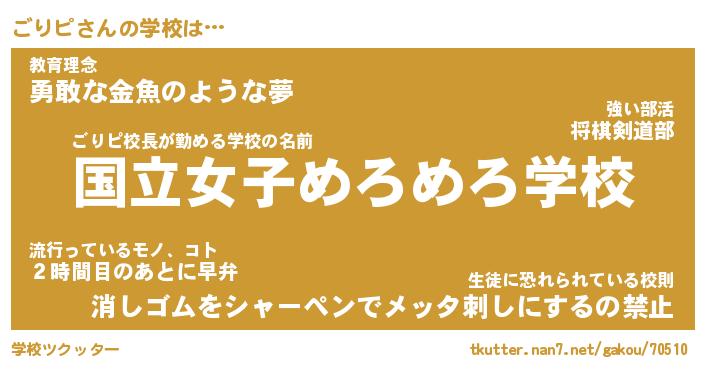 | ピコ太郎風あだ名 | 『ゴコ十郎』『ピゴ史郎』『ゴリ太郎』 |