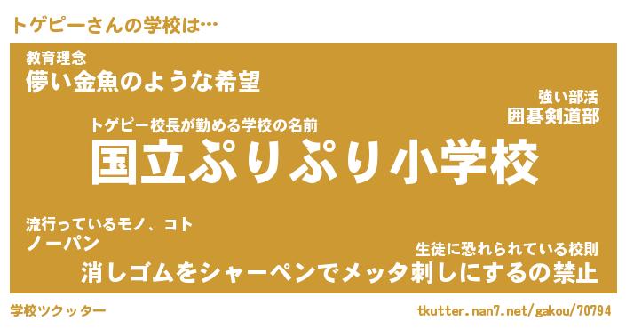 | ピコ太郎風あだ名 | 『トコ六郎』『ピト四郎』『トゲ六郎』 |