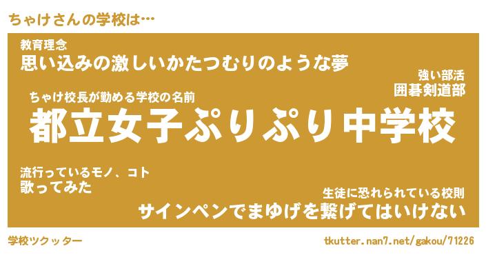 | ヒーロー風カッコイイあだ名 | 『スーパーチャケ』『ウルトラちゃけマン』 |