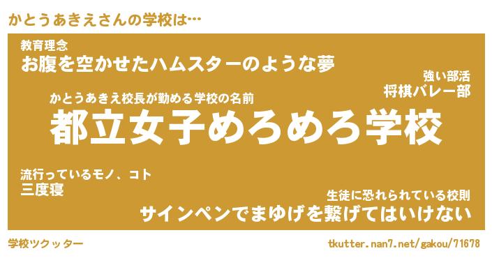 | 肩書あだ名 | 『かとうあきえ御曹司』 |