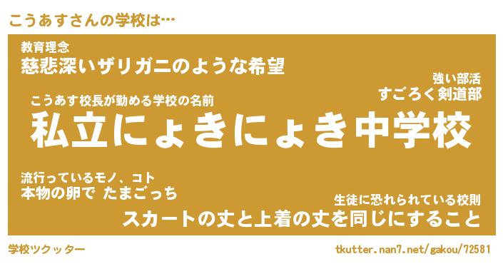 | こうあす先生が勤める学校名『私立もふもふ中学校』 |