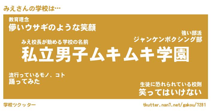 | 男性向けラノベタイトル風あだ名 | 『みえの憂鬱』『ノーゲーム・ノーミエ』 |
