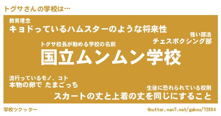 | ヒーロー風カッコイイあだ名 | 『スーパートグサ』『ウルトラトグサマン』 |