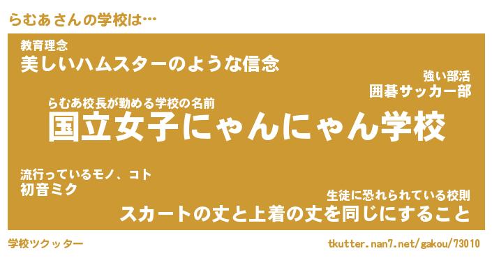 | 肩書あだ名 | 『らむあ社長令嬢』『らむあ国家主席』 |