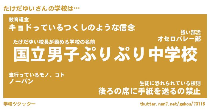 | ヘコむあだ名 | 『たけもー』『酢こんぶ』『たけ太郎』 |