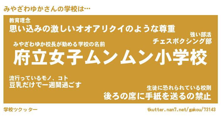 | ヒーロー風カッコイイあだ名 | 『スーパーミヤザワユカ』『銀牙騎士ミヤ』 |