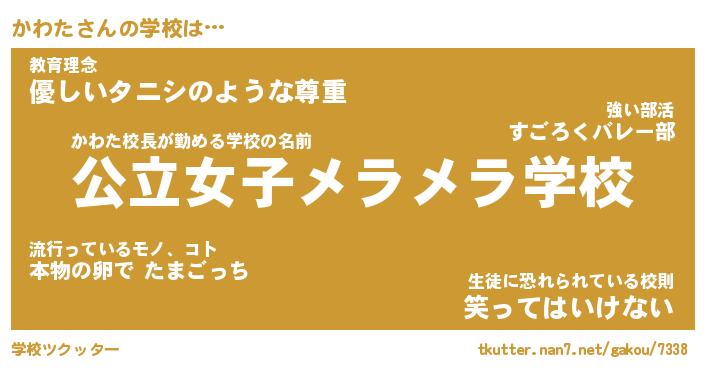 | 意味不明あだ名 | 『ペロリンかわた』『かわたフォーエバー』 |
