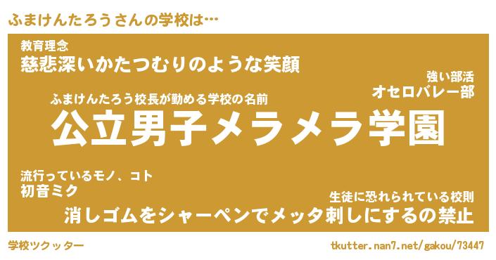 | 男性向けラノベタイトル風あだ名 | 『ふまけんたろうの憂鬱』 |