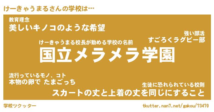| 男性向けラノベタイトル風あだ名 | 『けーきゃうまるの憂鬱』 |