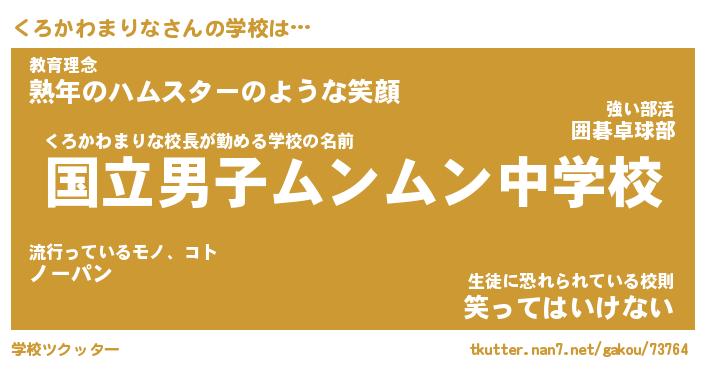 | 男性向けラノベタイトル風あだ名 | 『くろかわまりなの憂鬱』 |