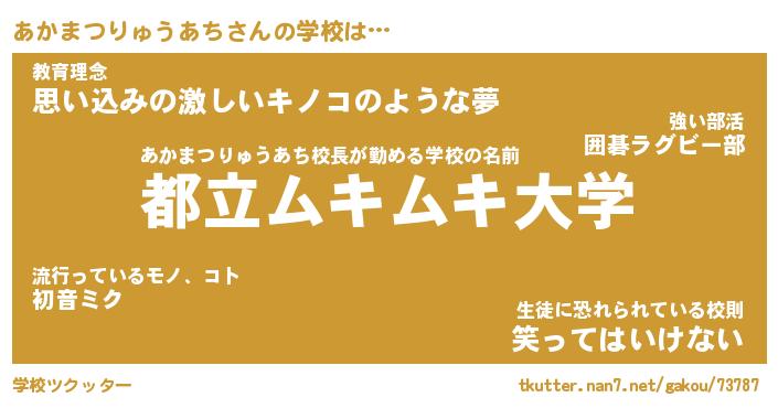 | 男性向けラノベタイトル風あだ名 | 『あかまつりゅうあちの憂鬱』 |
