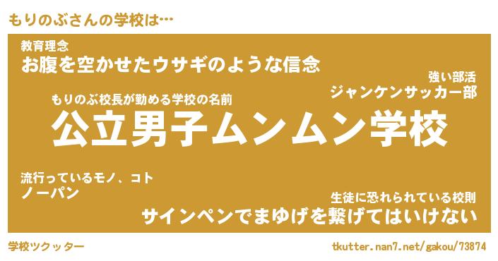 | 男性向けラノベタイトル風あだ名 | 『もりのぶの憂鬱』 |