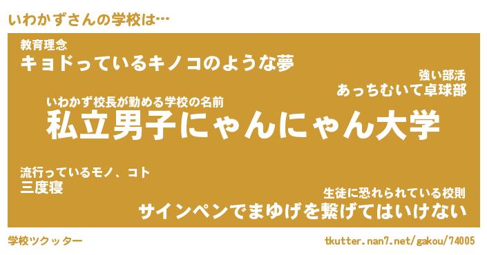 | ピコ太郎風あだ名 | 『イコ五郎』『ピイ四郎』『イワ二郎』 |