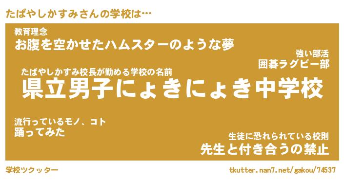 | ヘコむあだ名 | 『たばにゅー』『なまこ酢』『たばお』 |