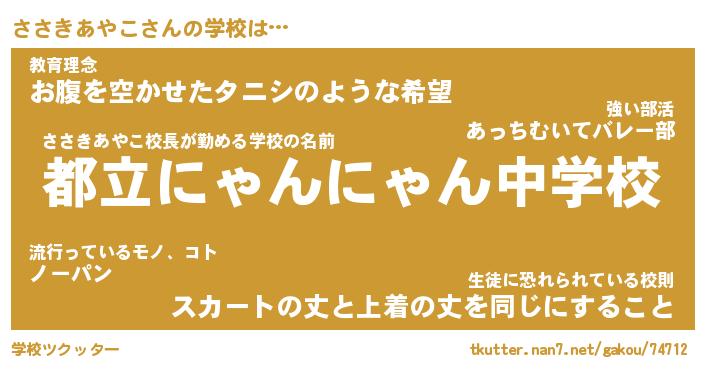 | 伝説のあだ名 | 『伝説のスナイパーささきあやこ』 |
