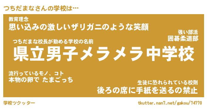 | ヒーロー風カッコイイあだ名 | 『スーパーツチダマナ』『銀牙騎士ツチ』 |