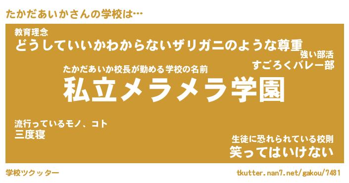 | ヘコむあだ名 | 『たかにー』『牛乳』『たか太郎』 |