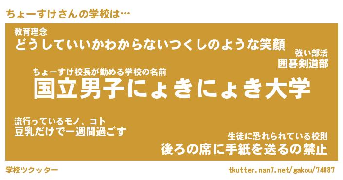 | 男性向けラノベタイトル風あだ名 | 『ちょーすけの憂鬱』 |
