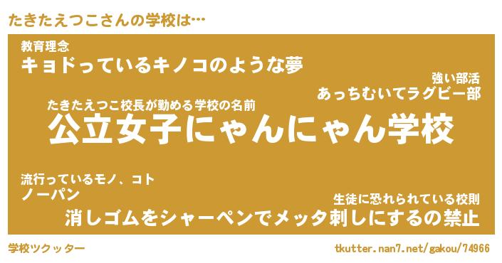 | 男性向けラノベタイトル風あだ名 | 『タキタエツコアートオンライン』 |
