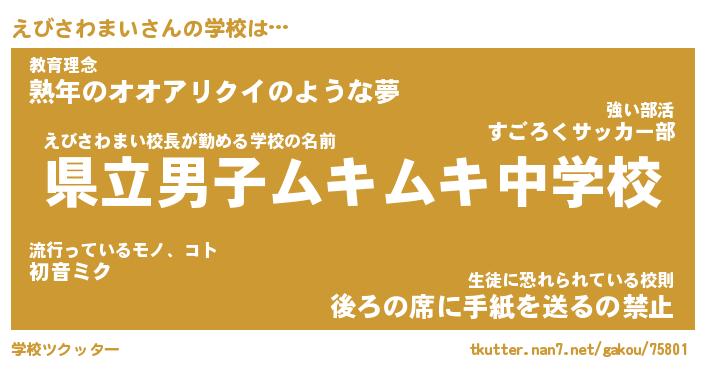| ヒーロー風カッコイイあだ名 | 『スーパーエビサワマイ』『黄金騎士エビ』 |