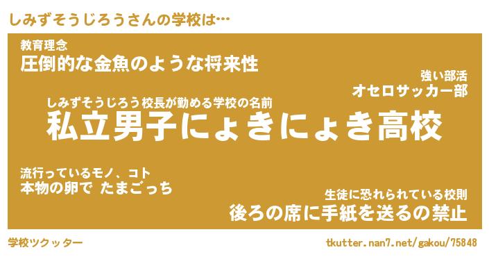 | 男性向けラノベタイトル風あだ名 | 『しみずそうじろうの憂鬱』 |