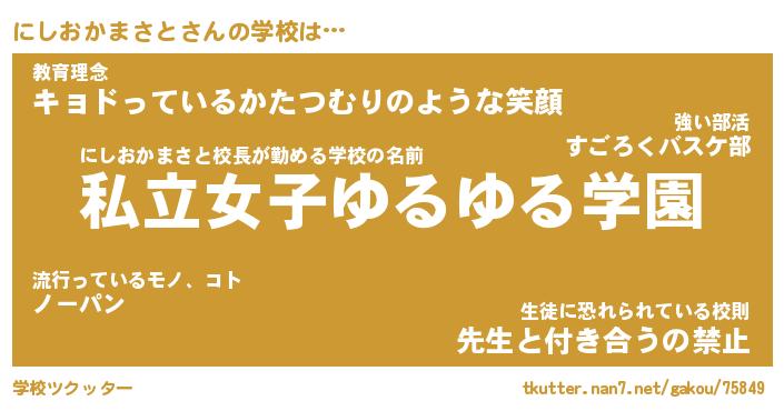 | 女子向けラノベタイトル風あだ名 | 『誰かこのにしおかまさとを説明してください! ~契約から始まるウェディング~』 |