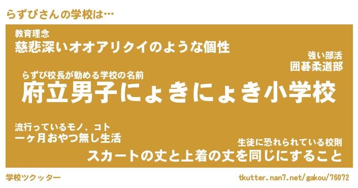 | ヘコむあだ名 | 『らずにゅー』『牛乳』『らずっ子』 |