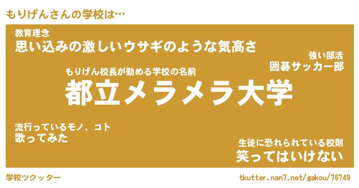 | 男性向けラノベタイトル風あだ名 | 『もりげんの憂鬱』 |