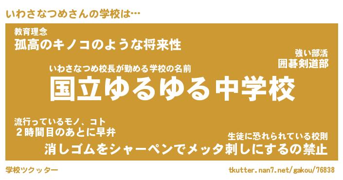 | 伝説のあだ名 | 『伝説のスナイパーいわさなつめ』 |